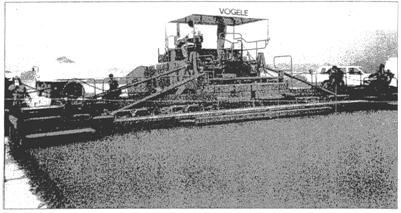 В ФРГ первый опытный участок дороги с покрытием толщиной 20 см из укатываемого бетона построен в 1987 г. Бетонную смесь укладывали с помощью асфальтоукладчика Super S1700 Vogele. Вибробрус асфальтоукладчика обеспечивал степень уплотнения 0,940 - 0,960 по Проктору. Далее уплотнение осуществляли виброкатком массой 9 т. После двух проходов без вибрации и двух проходов с вибрацией степень уплотнения достигала 0,985 [6].