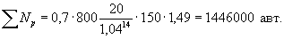 ΣNp = 1446000 авт; m = 4,0; α = 7,6 (см. таблицу П.3.1, ОДН 218.046-01);