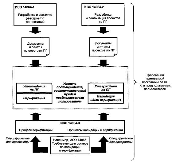 Комплекс стандартов ИСО 14064 является независимым (нейтральным) по отношению к программам по ПГ Если программа по ПГ приемлема, то ее требования являются дополнительными к требованиям, установленным в комплексе стандартов ИСО 14064.