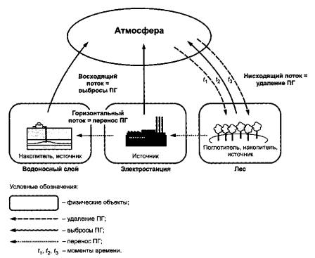 Примечание 3 - Сбор ПГ от источника ПГ до его поступления в атмосферу и хранение собранного ПГ в накопителе называют улавливанием и хранением ПГ.