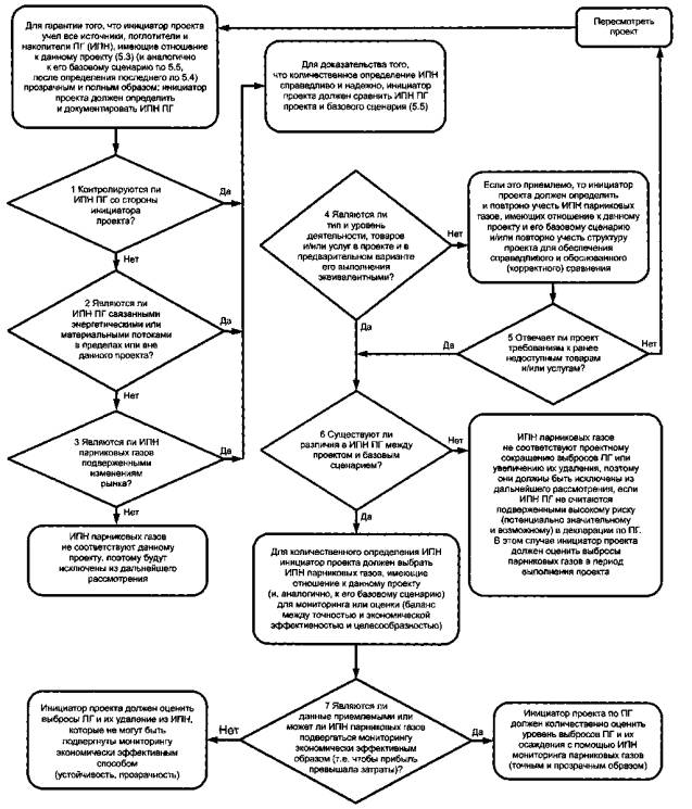 В общем случае базовый сценарий определяют на основе оценки альтернативных сценариев. Для проекта и базового сценария количественная оценка, мониторинг и отчетность по выбросам, удалению и/или хранению ПГ источниками, поглотителями и накопителями основывается на процедурах, разработанных инициатором проекта или принятых соответствующими органами.