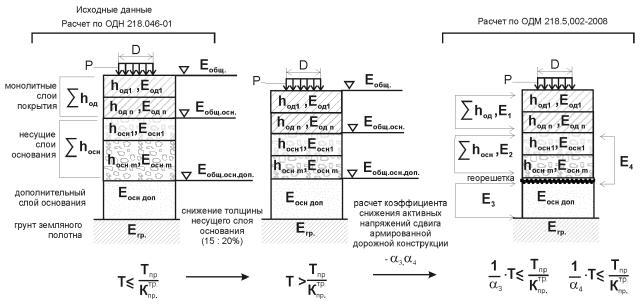1. Назначенная дорожная конструкция приводится к модели в соответствии со схемой на рис. 3.