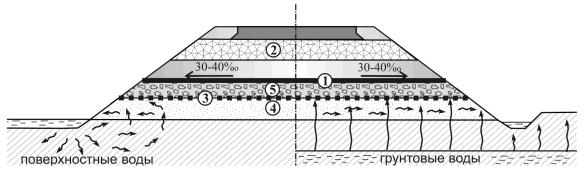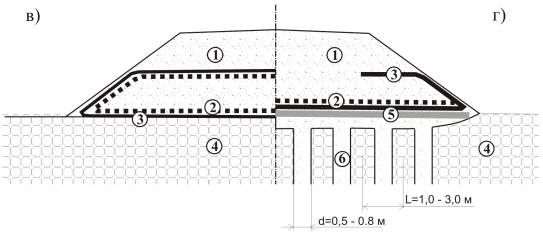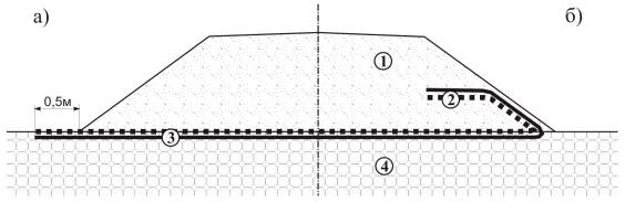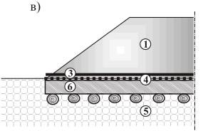 - армирования при расположении на контакте «слабый грунт - грунт насыпи»;