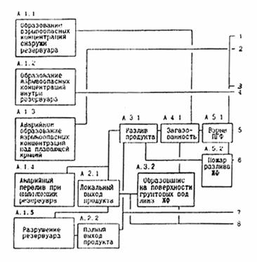 1.5. Анализ пожарной опасности объектов нефтепродуктообеспечения проводят на основе разработки модели возникновения и развития аварии с переходом в пожар (сценарий) применительно к конкретному случаю расположения объекта нефтепродуктообеспечения на селитебной территории (прил. 1).