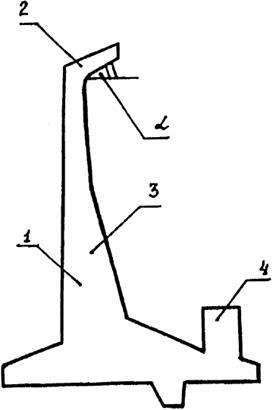 1 - ограждающая стена в виде вертикального ломаного откоса 3; 2 - волноотражающий козырек; 4 - защитный зуб для гашения энергии волны прорыва; a - угол наклона волноотражающего козырька