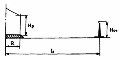 Высоту ограждающей стены определяют по номограмме (рис. 3) на основании расчетной схемы, приведенной на рис. 4. При определении оптимальной высоты стены исходят из особенностей планировочных решений резервуарного парки и необходимости устройства подслойного тушения в пространстве между ограждающей стеной и резервуаром.