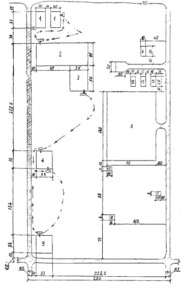 Рис. 1. Примерная схема расположения оборудования и строений на трубосварочной базе.