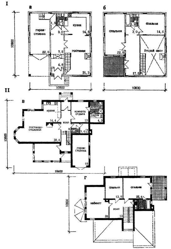 II - двухэтажный жилой дом с кирпичными стенами: в - план 1 этажа, г - план 2 этажа. ( Архитектор Михе А.).