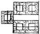 На рис. 2 приведены примеры блокированных жилых домов, в том числе двухквартирный с зеркальной блокировкой квартир, четырехквартирный с двухрядной зеркальной блокировкой квартир, шестиквартирный с блокировкой квартир со сдвигом в одну сторону, четырехквартирный с линейной блокировкой квартир.