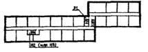 I - в секциях с незадымляемой лестничной клеткой 1-го типа - летние помещения с глухими участками наружных стен: а - между двумя проемами в одной квартире; б - между торцом лоджии и проемом; в - между торцом балкона и проемом.
