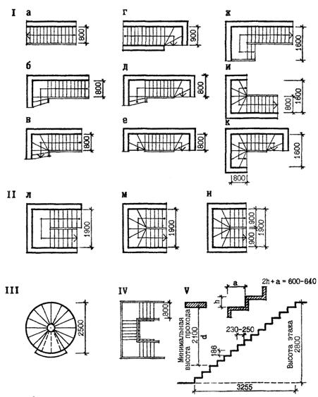 I - одномаршевые лестницы (а, б, в, г, д, е, ж, и, к);