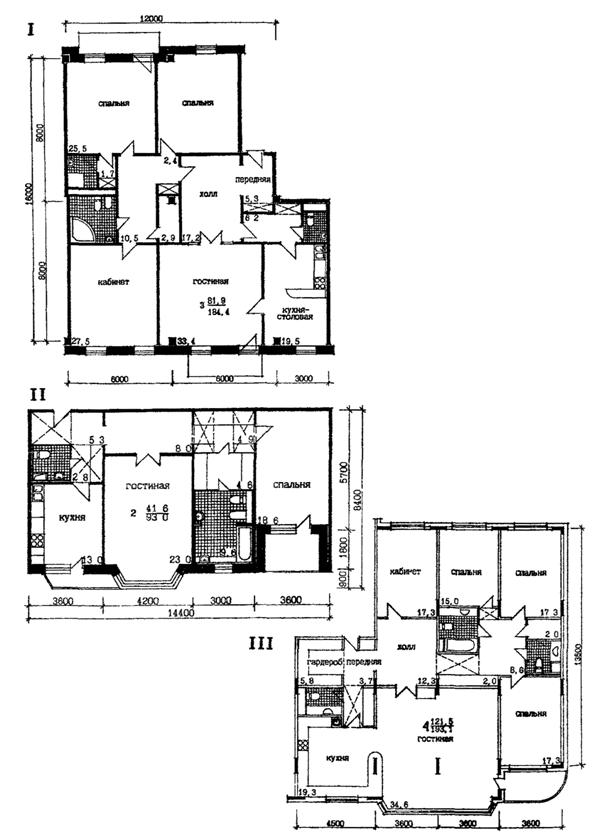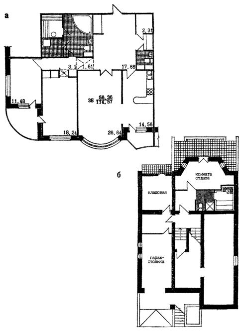 Примеры решения квартир жилища II категории комфорта и квартир и одноквартирных домов жилища I категории комфорта приведены на рис. 34 и 35.