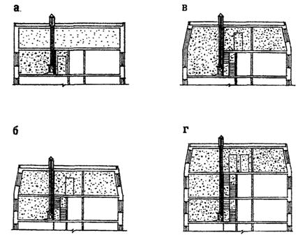 I - схемы размещения каминов в квартирах верхних этажей многоквартирных жилых домов: