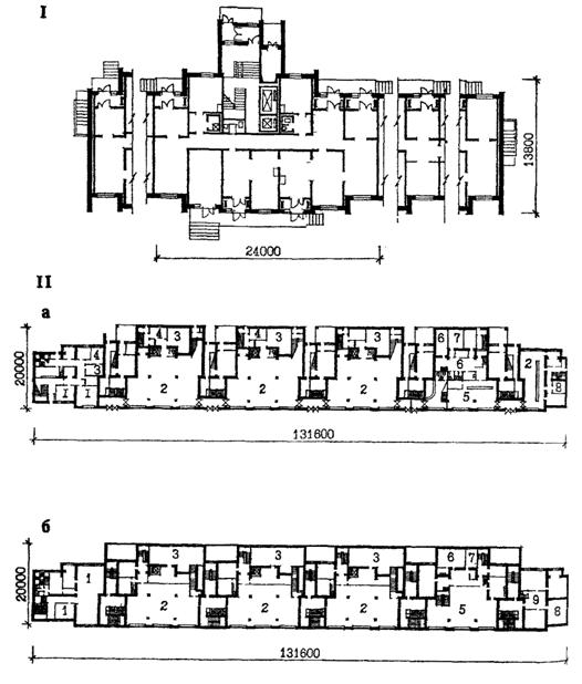 I - 1-комнатные квартиры: а - серия ЭКО; б - серия П44.