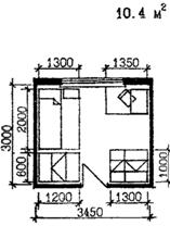 В спальне для молодых супругов целесообразно размещение дополнительного спального места для ребенка, так как непосредственная связь между спальными местами матери и ребенка до трех лет необходима для ухода за ним в ночное время. В этом случае площадь спальни рекомендуется принимать не менее 14 м2.