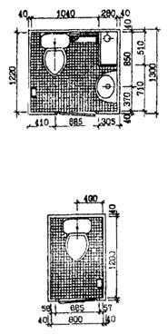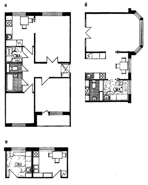 Примеры решения санитарно-гигиенических помещений в составе жилых ячеек приведены на рис. 44.