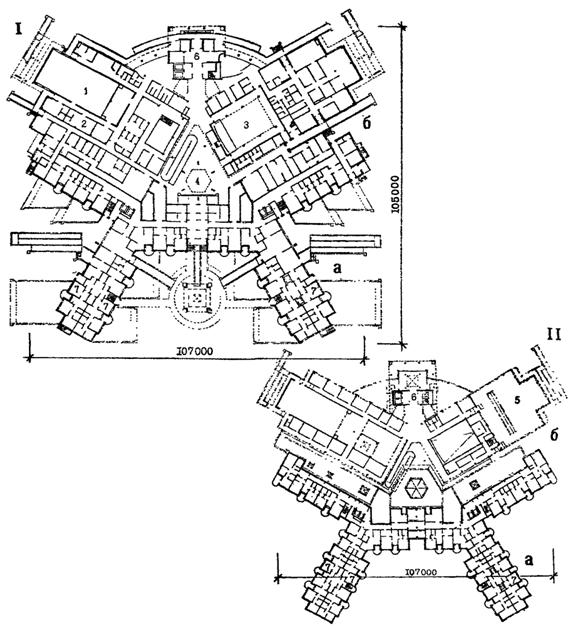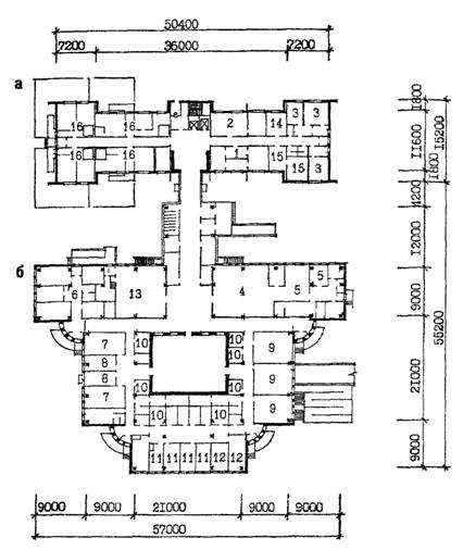а - жилая часть; б - центр медико-социальной реабилитации.