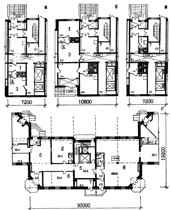 а, б. - серия КОПЭ (АО Моспроект); в - серия Пд4 (МНИИТЭП).