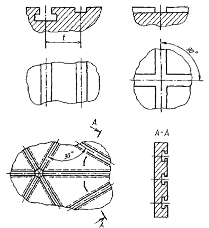 7.6 На базовых поверхностях круглых плит допускаются радиально и комбинированно расположенные пазы (рисунок 6).