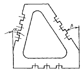 7.11.1 Расстояние t (рисунок 28) между соседними пазами (шаг) должно быть кратным модулю шага т и определяться по формуле