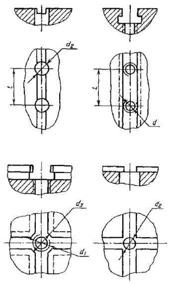 7.8 В П-образных пазах должны быть предусмотрены гладкие или резьбовые отверстия для крепления шпонок. Размеры отверстий или координаты их расположения должны соответствовать установленным в настоящем стандарте.