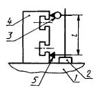 На проверяемой поверхности детали 1 (рисунок А.1) последовательно в продольных и поверочных направлениях на двух регулируемых опорах 2 устанавливают поверочную линейку 3 так, чтобы показания измерительной головки или индикатора (далее измерительная головка) 4 на концах линейки были одинаковы.
