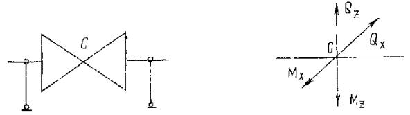 На конструктивной схеме в этом случае будут показаны две опоры, а в расчетной схеме здесь должна быть принята одна опора, препятствующая линейным и угловым перемещениям закрепляемой точки С.