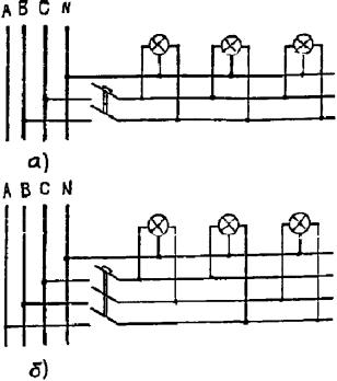 3.129. В групповых сетях переменного тока с заземленной нейтралью зануление светильников следует осуществлять: