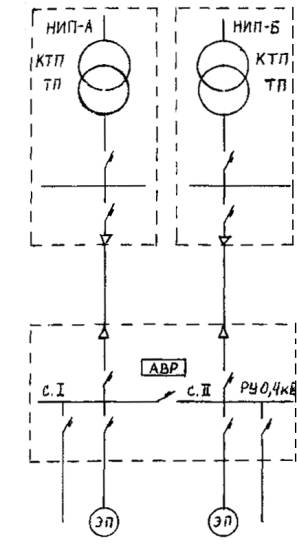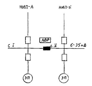 Для ЭП 6-35 кВ требование к числу НИП и устройству АВР следует относить к секциям сборных шин 6-35 кВ подстанции, к которой подключены ЭП (рис. 3.1).