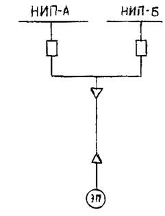 3.10. При отнесении указанных на рис. 3.1 - 3.9. ЭП к особой группе I категории требование к числу НИП следует относить к питающим секциям сборных шин РУ. При отключении одного из двух источников питания (НИП-А или НИП-Б) оставшийся в работе НИП должен обеспечить питание всей нагрузки. При отключении обоих источников питания (НИП-А и НИП-Б) третий независимый источник питания должен автоматически подключаться к питающим секциям сборных шин РУ и обеспечить безаварийный останов производства. Допускается также ручное неавтоматическое подключение третьего НИП к секциям сборных шин РУ.