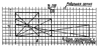 на опорной модульной сетке (1500´1500 мм) намечают трассу технического коридора;