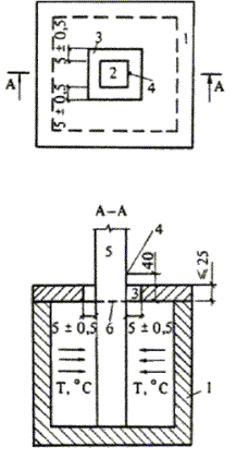 1 - огневая печь; 2 - образец; 3 - проем огневой печи; 4 - термопара; 5 - контрольная зона; 6 - граница контрольной зоны