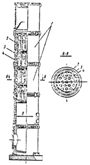 Снижение уровней звукового давления в дБ секционными, вертикальными глушителями шума, с цилиндрическими сетчатыми звукопоглотителями, наполненными керамзитом (фракция 3-6 мм)