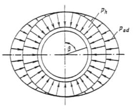 pad - интенсивность дополнительного горизонтального давления грунта на стену опускного колодца;