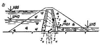 Примечание. Проектирование таломерзлых земляных насыпных плотин с негрунтовыми противофильтрационными устройствами и каменно-земляных плотин разрешается при соответствующем обосновании.