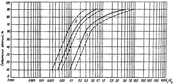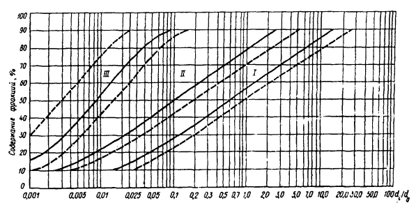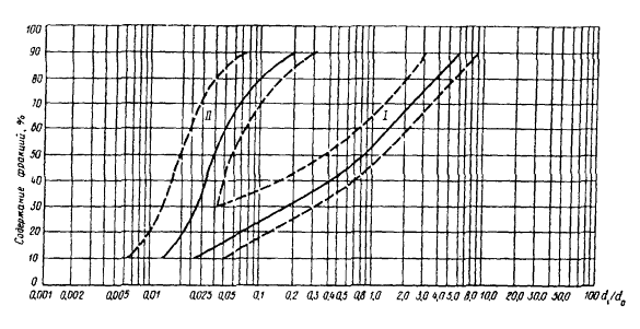 Черт. 3. Зависимость коэффициентов трения грунтов по стальной диафрагме от их крупности и влажности