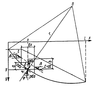 Р(х) - расчетная нагрузка на диафрагму; dр(х) - реактивные напряжения в грунте низовой призмы; Мо, То - реактивные соответственно момент и сила трения, действующие в опоре диафрагмы; хi - смещения диафрагмы; Н - высота диафрагмы