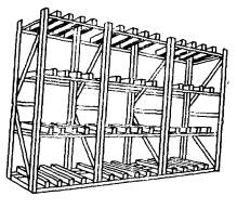 Стеллаж, наклонная грузонесущая поверхность которого обеспечивает перемещение груза под действием его силы тяжести