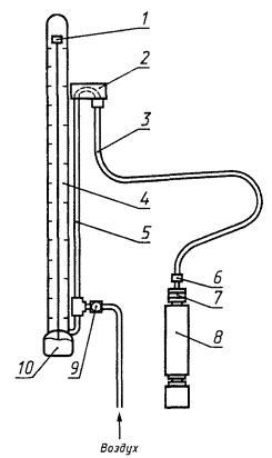 Выдерживают собранный аппарат в погруженном состоянии в течение 5 мин, слегка постукивая манометр, и снимают показание.