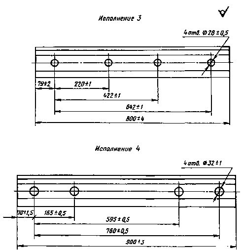 3. Длина накладок, расположение и размеры болтовых отверстий с наружной стороны должны соответствовать указанным на черт. 2 и 3.