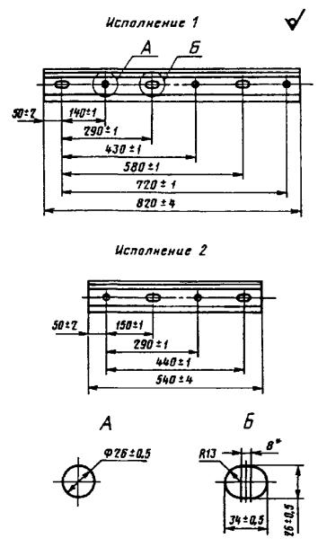 3. Исполнения накладок и расположение болтовых отверстий с наружной стороны накладок должны соответствовать указанным на черт. 2.