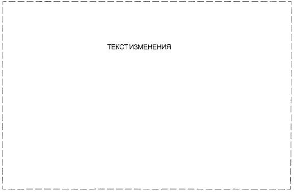 номер страницы 1) Или сведения о принятии изменения к стандарту по переписке с указанием даты его регистрации Бюро по стандартам. 2) Если за принятие изменения проголосовали все национальные органы, указанные в предисловии стандарта, то вместо их перечисления приводят соответствующую информацию. 3) В обоснованных случаях для изменения может быть установлена единая для всех государств, указанных в предисловии стандарта, дата введения в действие, которую указывают вместо информации о его введении в действие в отдельных государствах. 4) Эти слова не приводят при оформлении проекта изменения к стандарту, а также в случае, когда изменение заканчивается на данной странице. В последнем случае после текста изменения в скобках приводят аббревиатуру, номер и год издания информационного указателя стандартов (ИУС №_________), в котором опубликовано это изменение. Поправка. ИУС 5-2003. |