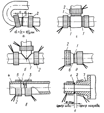 расположение индукторов должно быть одинаковым для каждого сварного соединения.