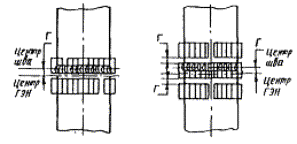 На соединениях с разной толщиной стенок установку поясов ГЭН следует производить со смещением на 10 - 25 мм в сторону большей толщины.