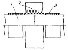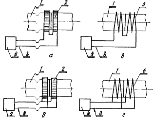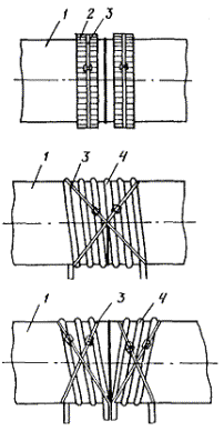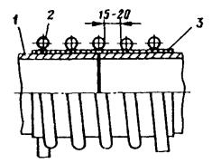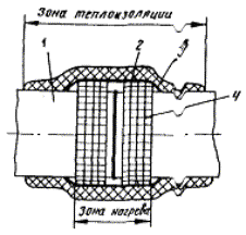 2.2.1. Устанавливают преобразователи и закрепляют их горячие спаи на поверхности трубопровода в соответствии с п. 2.1.9 и черт. 3, а. Часть преобразователя, находящуюся под нагревателем, необходимо теплоизолировать с помощью асбестовой или кремнеземной ткани.