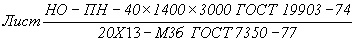 То же, горячекатаная, термически обработанная, травленая, толстолистовая, марки 20X13, М3б группы поверхности, с необрезной кромкой, нормальной плоскостности, размером 40´400´3000 мм: