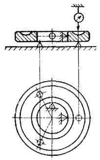 62. Непостоянство положения образующей наружной цилиндрической поверхности наружного кольца с упорным бортом относительно опорного торца упорного борта (шариковый подшипник с желобом) SD1
