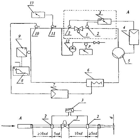 Необходимо заменить регулятор температуры на защитный колпачок. Устанавливают величину потока в диапазоне 0,9-1,2 номинального потока при перепаде давлений 0,01 МПа. Величина потока должна регулироваться в направлении закрытия. Отмечают положение колпачка, соответствующее установленному потоку. Затем колпачком регулируют поток в соответствии с инструкцией производителя так, чтобы он соответствовал уменьшению температуры на 1 °С. Измеряют вновь полученную величину потока. На кривой 4 (рисунок 8) определяют температуры датчика для этих потоков. Определяют разность температур датчика.