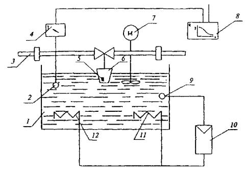 Испытание регулятора температуры на прочность при вращении должно проводиться в соответствии со схемой, показанной на рисунке 13, при температуре воды (90 ± 2) °С и статическом давлении 0,1 МПа в циркуляционном контуре теплоносителя. Спустя 20 мин после начала испытания рукоятку регулятора температуры необходимо повернуть в крайнее минимальное положение. В течение 30 с прикладывают крутящий момент 8 Н×м в ту же сторону.