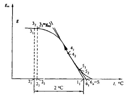Строят точку gmx1 на кривой закрытия 4 (рисунок 8). К температуре, которая соответствует этому потоку, прибавляют 1,5 °С. Для полученной температуры определяют величину потока.